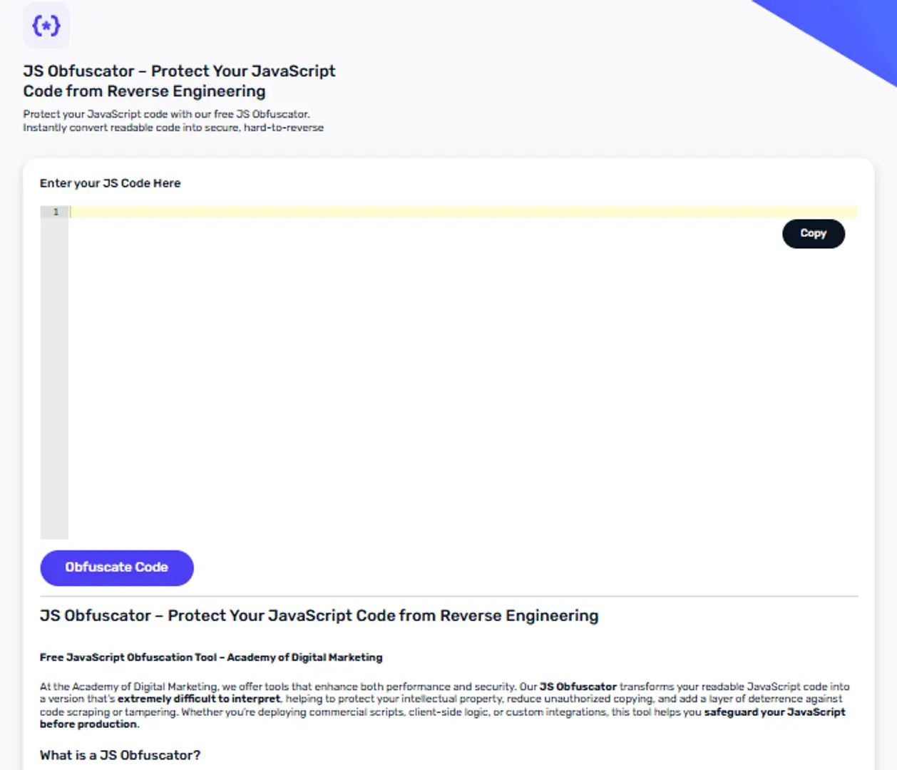 Overview: ADM Tools provides an online JS obfuscator as part of its utility toolkit. It is a quick browser-based tool you can use to obfuscate small scripts or test ideas. This tool is available at the ADM Tools website. (tools.admeducation.com)