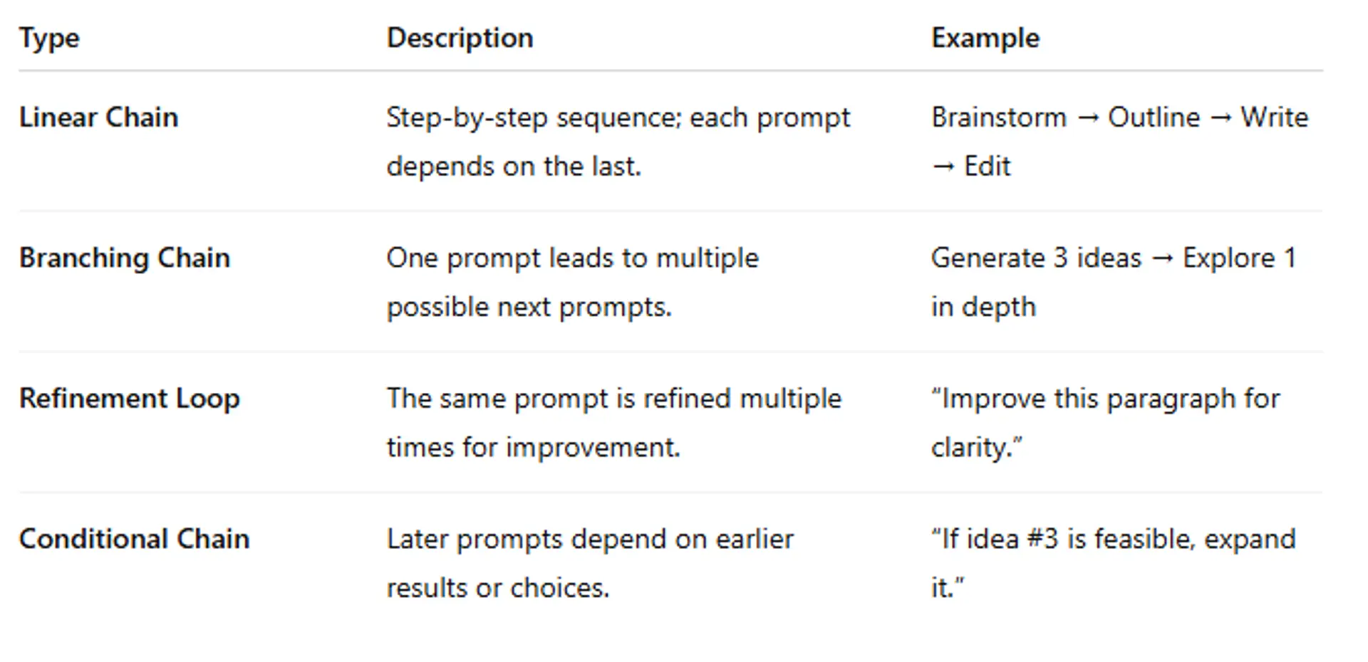💡 Pro Tip: You can mix and match chain types for flexible, iterative workflows.