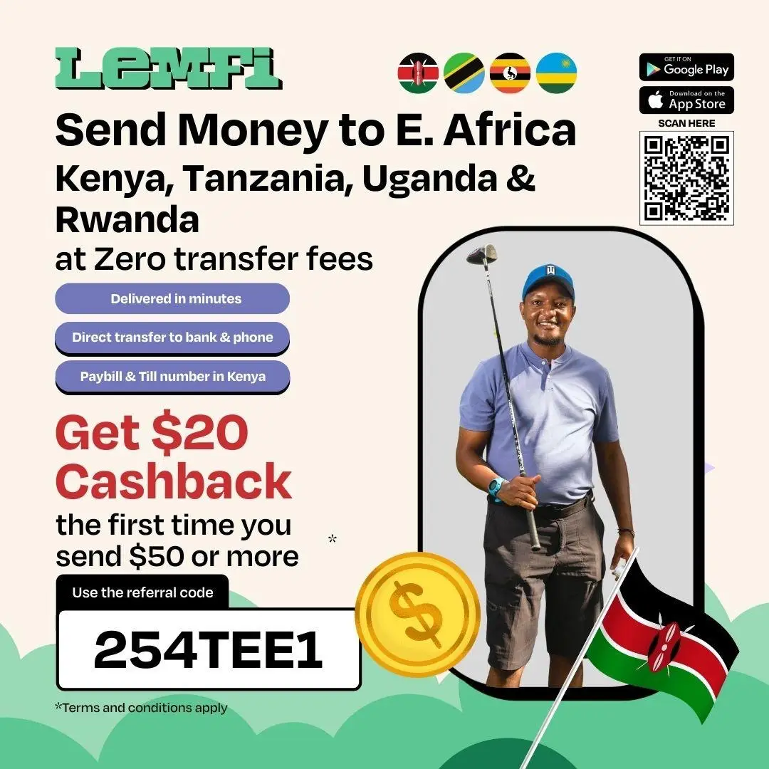 Get Lemfi at https://referral.lemonade.finance/invite/tnwAEzm7Fe8bqhWv9. Use code 254TEE1 and get a $20 bonus, by sending any amount over $50 on first transfer to Kenya๐ฐ๐ช , Uganda ๐บ๐ฌ, Tanzania ๐น๐ฟ, Rwanda ๐ท๐ผ, anywhere in Asia, Africa, Europe and Latin America.